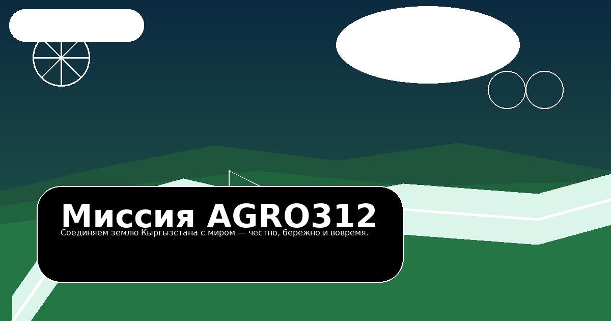Мы соединяем землю Кыргызстана с миром — честно, бережно и вовремя. Наша миссия — превращать аграрный потенциал страны в стабильные поставки качественной продукции, которые улучшают жизнь людей и берегут природу.